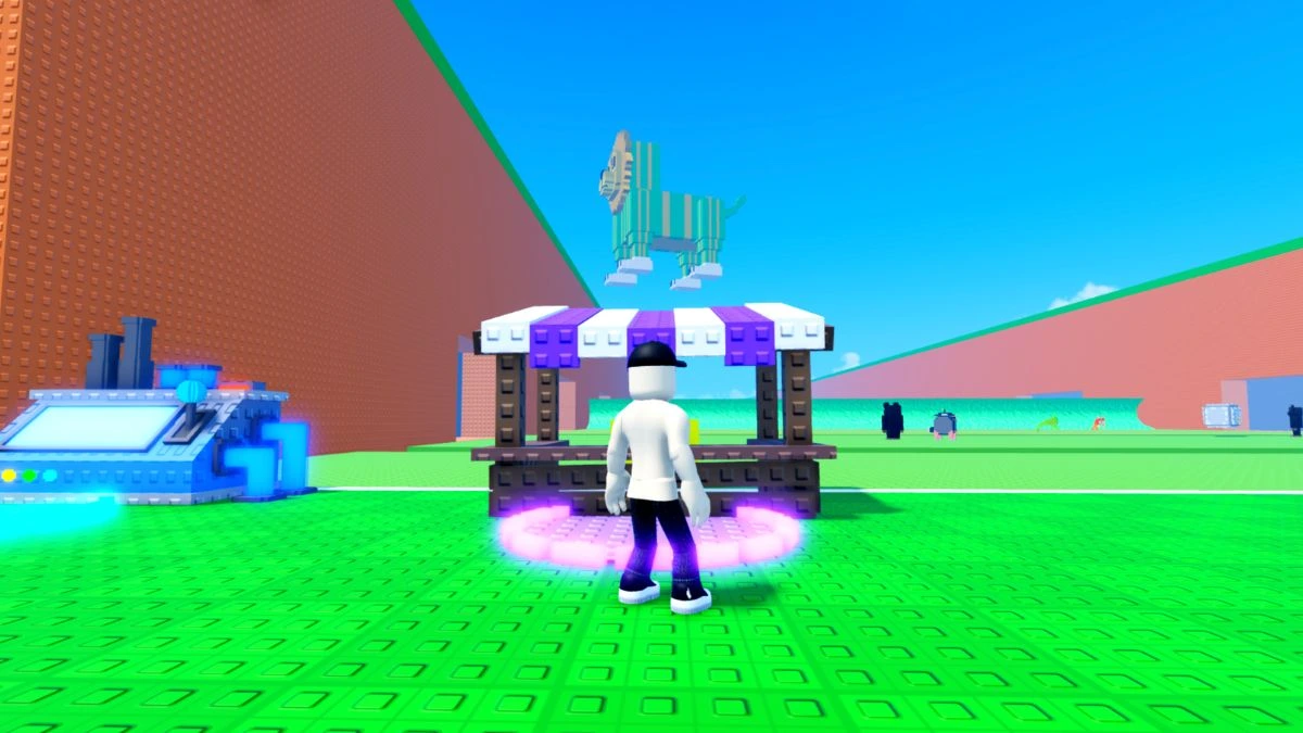 Найти Mystery Merchant (Таинственного торговца) просто, если знать, куда смотреть. Магазин расположен на левой стороне карты, так что при спавне в игру направляйтесь к левому краю игровой зоны. Ищите здание с яркой фиолетовой цветовой схемой, которое выделяется среди других построек. На магазине явно написано «Mystery Merchant», так что его легко опознать, оказавшись в нужной области. Найдя магазин, зайдите внутрь и взаимодействуйте с торговцем, чтобы увидеть, какие предметы сейчас доступны для покупки.