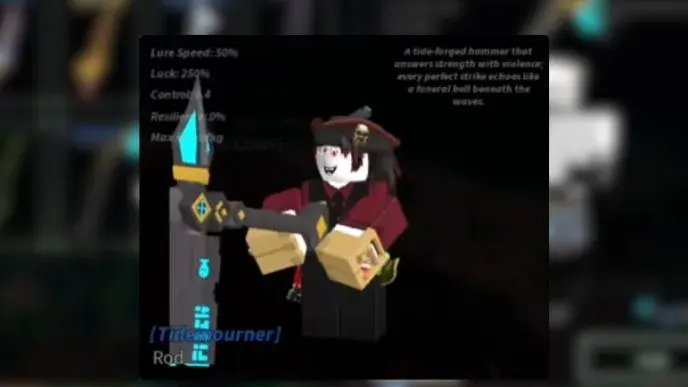 Удочка Tidemourner оснащена мощными пассивными эффектами, ориентированными на оглушение рыбы. Высокая Cast Power усиливает Slam, давая начальный Progress. Идеальные забросы имеют 50% шанс оглушить рыбу на 5 секунд. Если рыба находится на удочке 5+ секунд подряд, молот ударит по ней, оглушит и даст Progress.