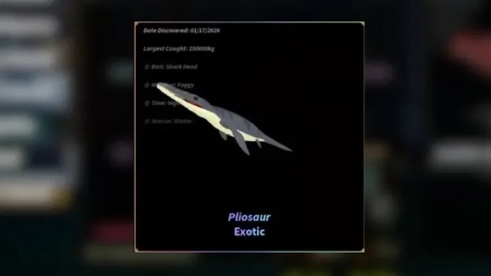 Помимо этих условий, помните, что Pliosaur может наложить эффект -90% скорости прогресса на вашу удочку. Чтобы противостоять этому, используйте некоторые из лучших зачарований Fisch для удочки, которые ускоряют прогресс. Swift, Steady, Immortal и зачарование Blessed Song — отличные варианты.