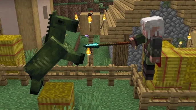- Атака-рывок копья не работает, если вы едете на верховом животном, летаете с элитрами или находитесь под водой.
